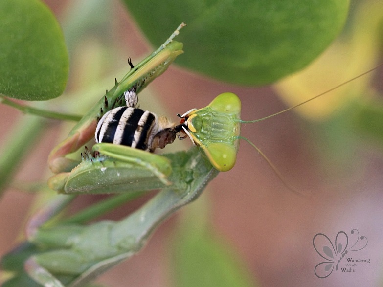 Also called African Mantis or Bush Mantis, this species (Sphodromantis viridis) is a popular pet around the world. They are native to West Africa, south of the Sahara, so are an introduced species here in Sinai.