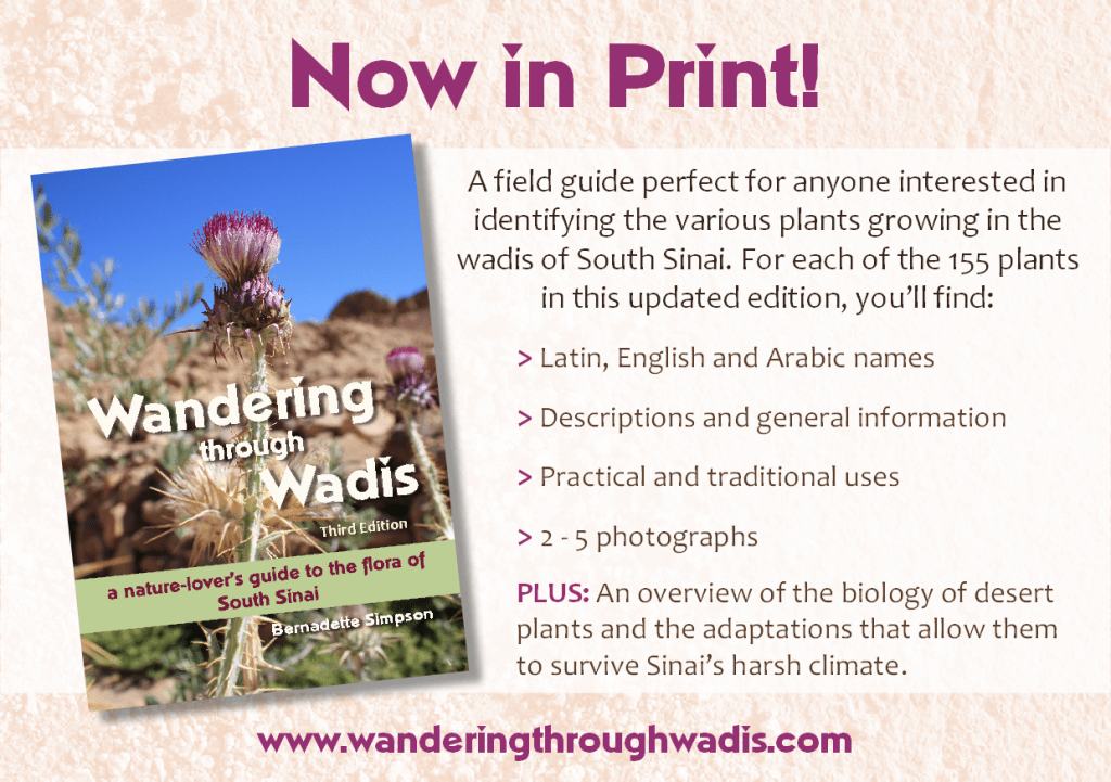 And now I finally have a limited number of print copies available of the third edition of Wandering through Wadis: A nature-lover’s guide to the flora of South Sinai!!