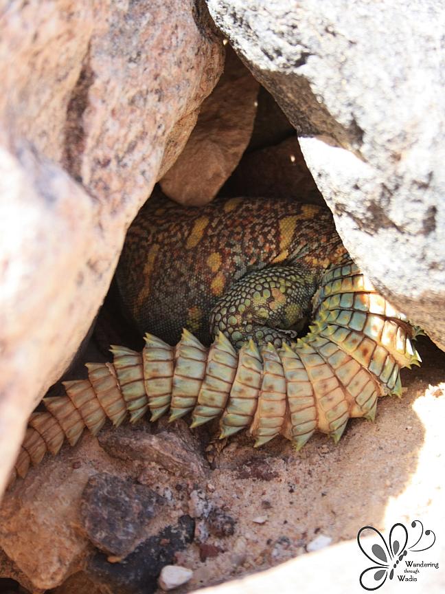 This past weekend we decided to wander along one of our usual routes, and I was treated to an unusual spotting – a sand snake! As we were walking, we passed a large dark boulder where I often spot agama lizards. I was just about to mention this to my friend when I looked down at the rock I was about to step on, suddenly realized that is what not a branch laying across it, and quickly had to swing around to avoid stomping on a snake. Eeek! I’m not completely comfortable with snakes apparently. But he was beautiful! A gorgeous golden-brown color with dark brown patterns. I wish I could share a picture of him, but I guess he was just as scared as me because he slithered away and hid beneath a rock.